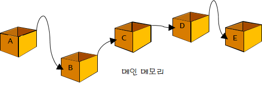 - 데이터들은 메인 메모리상의 어디에나 흩어져서 존재할 수 있다.