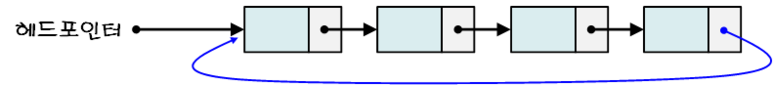 두 번째로 원형 연결 리스트(circular linked list)는 단순 연결 리스트와 같지만 마지막 노드의 링크 값이