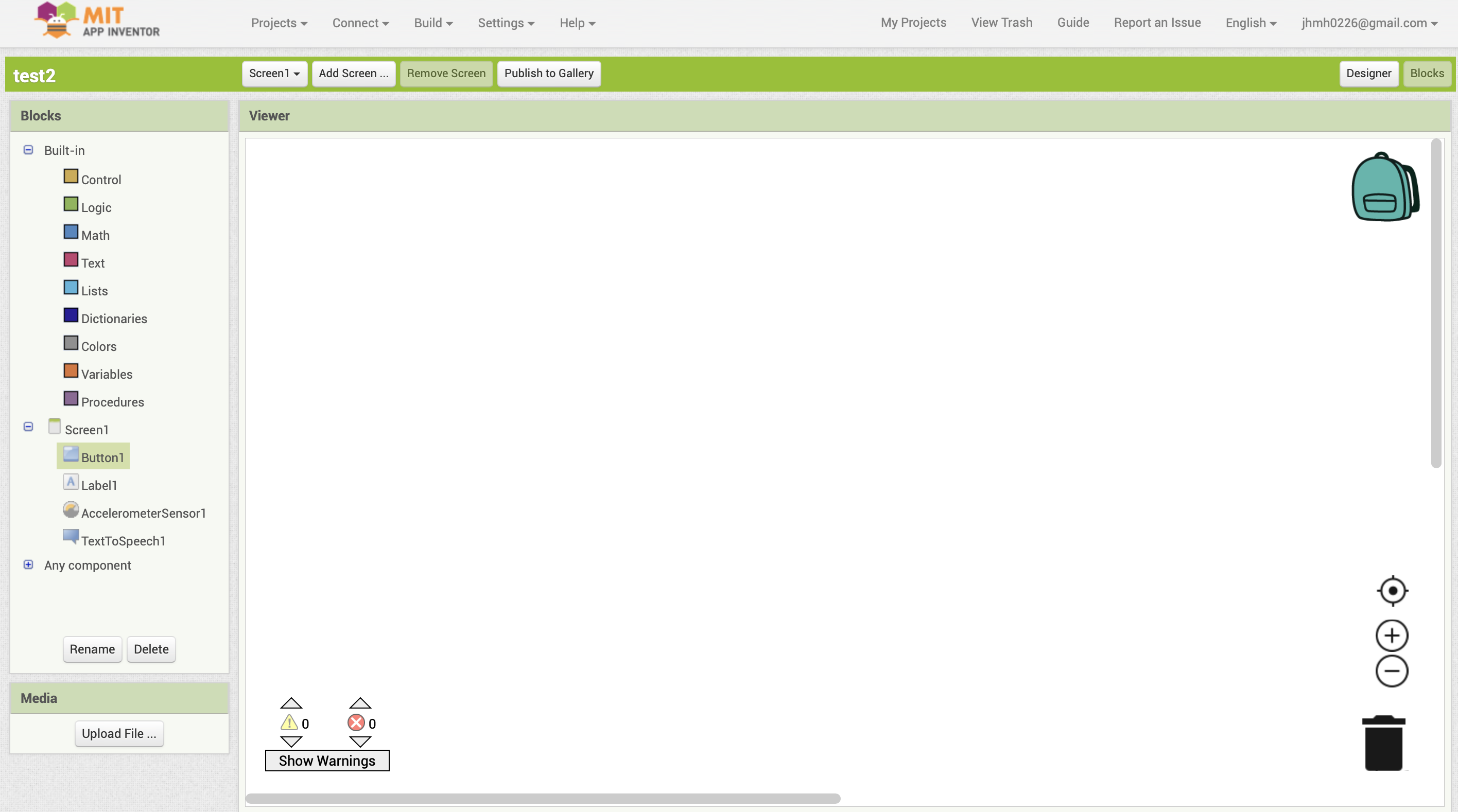 좌측에 보면 아까 디자인에서 넣어두었던 컴포넌트들을 확인할 수 있다. 컴포넌트를 누르면 각각의 컴포넌트들이 사용할수 있는 기능들의 블록이 나온다. 이 블록들을 가지고 코딩을 해보자. 기능들의 설명과 코딩과정을 시간관계상 생략하도록 하겠다.