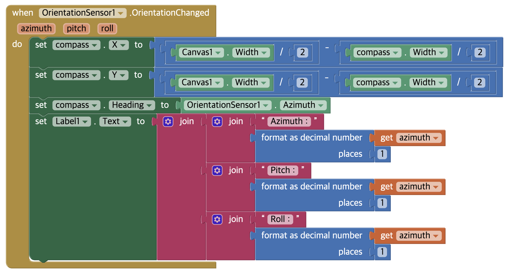 나머지는 레이블의 값을 수정하는 것이다. 방향센서에서 우리가 출력해야하는 값을 모두 제공해주므로