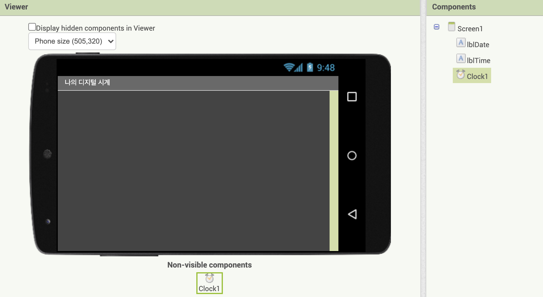 이번에는 clock 컴포넌트를 이용하여 시계를 만들어보려고 한다,