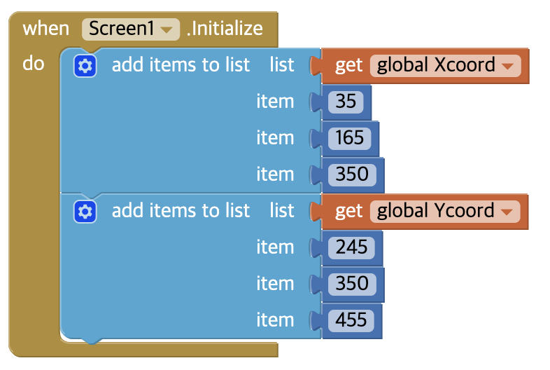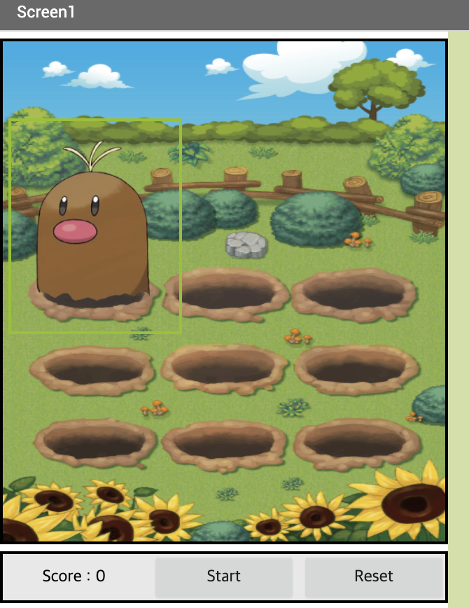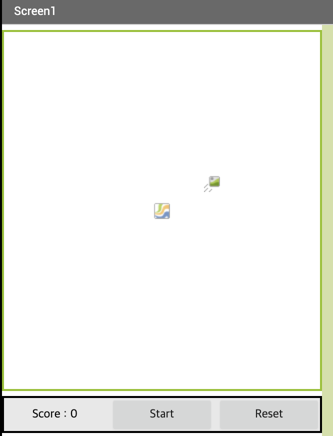 HorizontalScrollArrangement를 이용해서 점수판과 start버튼과 reset버튼을 만들어 주었다.