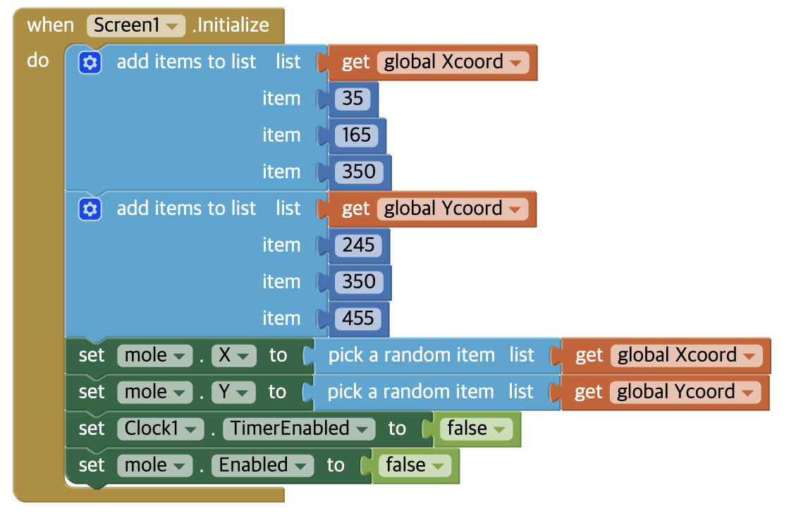 게임이 시작될 때, 두더지의 위치 초기값을 정해줄 것이다.