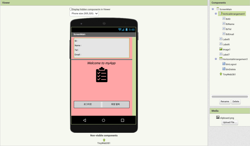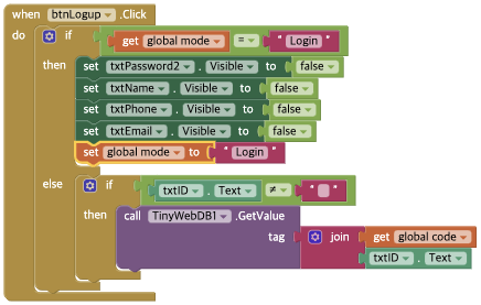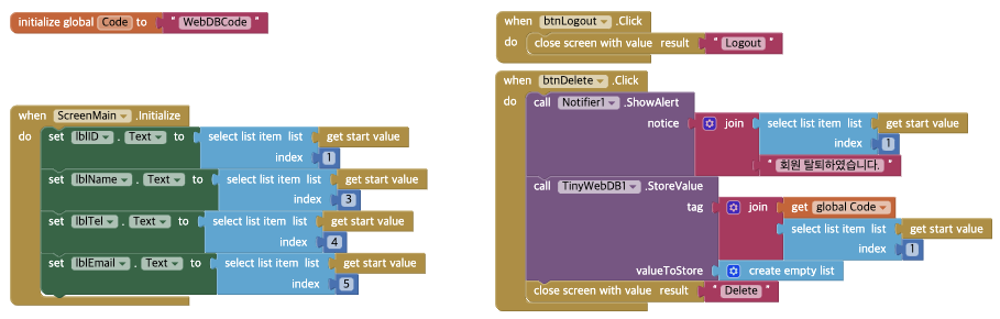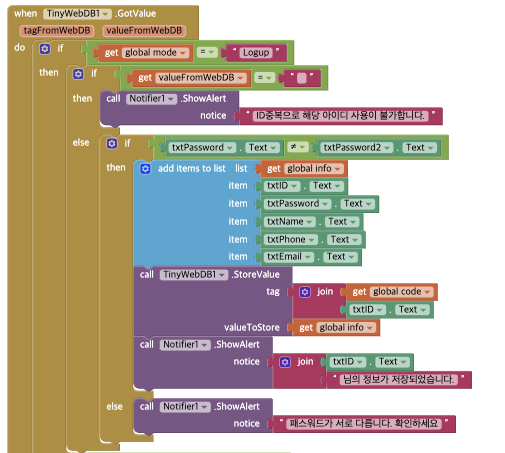 - TinyWebDB에서 ID정보를 읽어와서