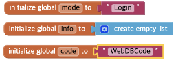 여기서 code라는 변수는 TinyWebDB에 사용되는 코드의 값을 담은 변수이다.