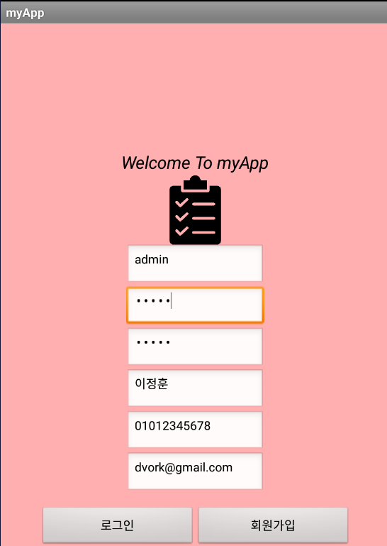 ID와 회원 정보를 입력하고 회원가입 버튼을 클릭하면