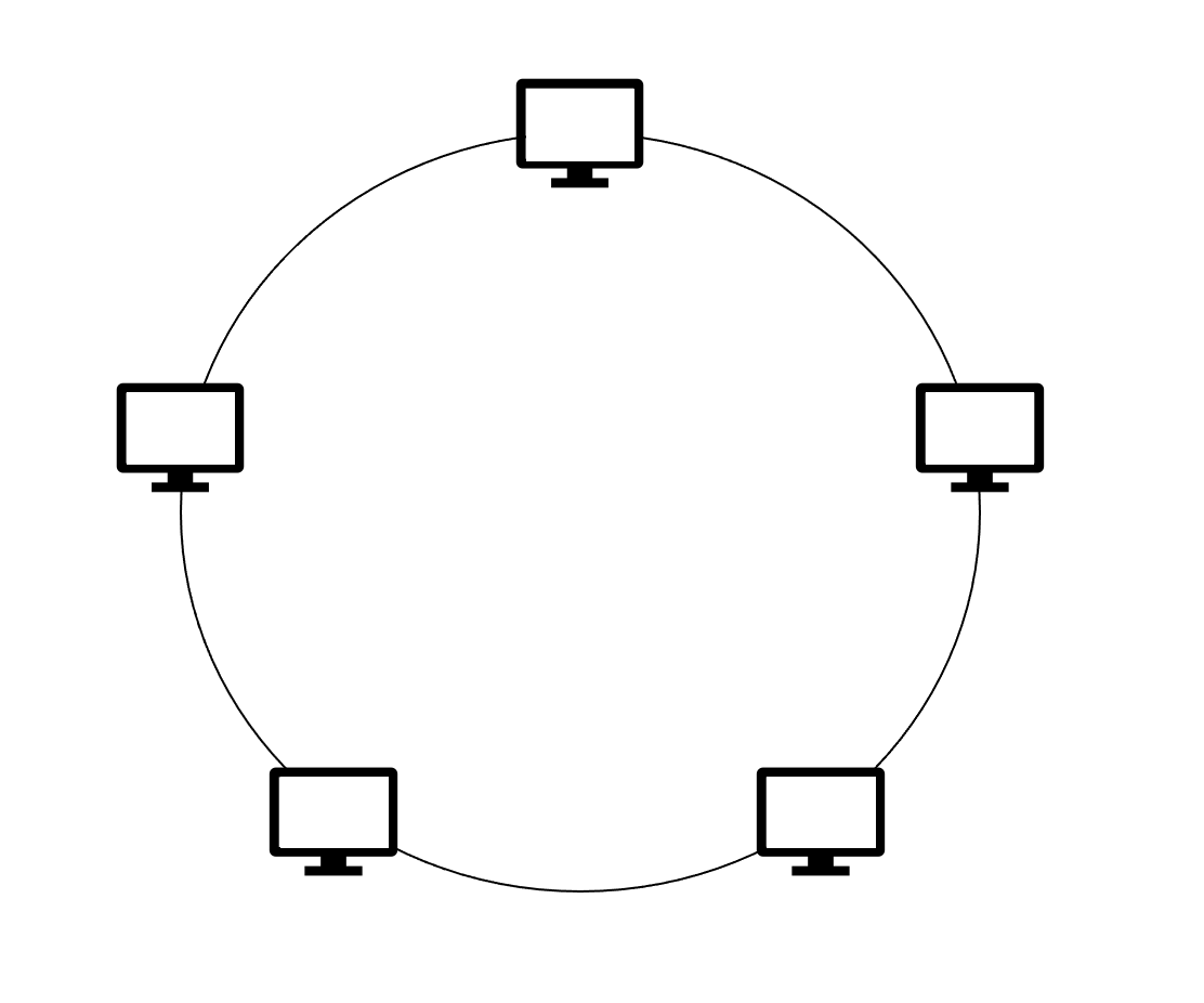 링형(Ring) | - 장점 노드의 수가 증가되어도 데이터 손실X 충돌 발생 가능성 X 경제적인 네트워크 구성 가능 - 단점 구성의 변경이 어려움 회선에 장애 발생 시 네트워크 사용 불가 |