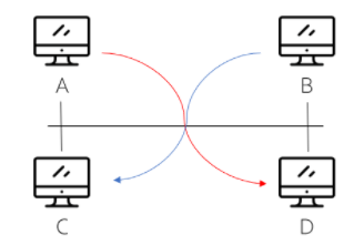 - A에서 D, B에서 C로 동시에 전송할 경우