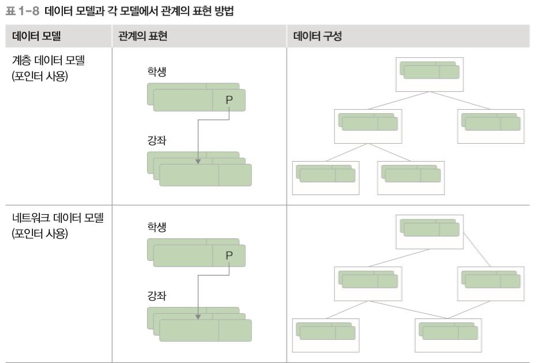 • 포인터 사용 : 계층 데이터 모델, 네트워크 데이터 모델